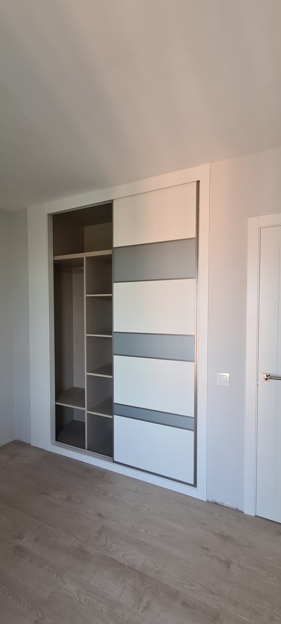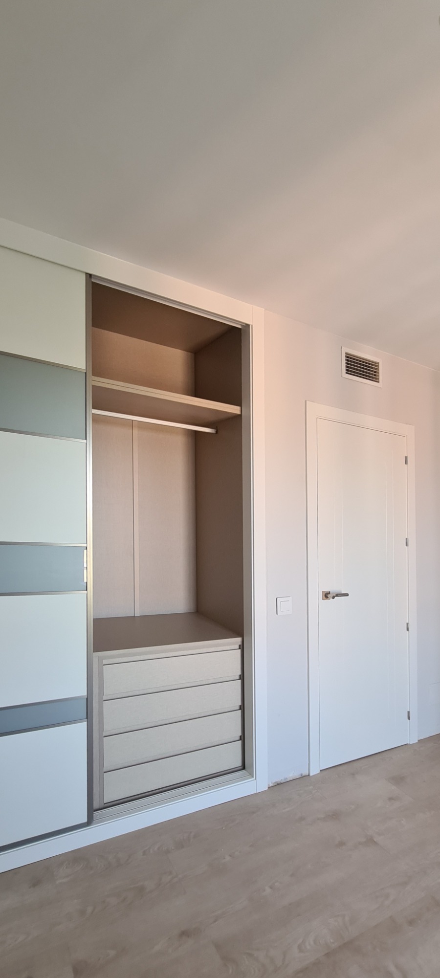 En esta obra se combinaron diferentes modelos de frentes de armario, consiguiendo diferentes ambientes en cada estancia.