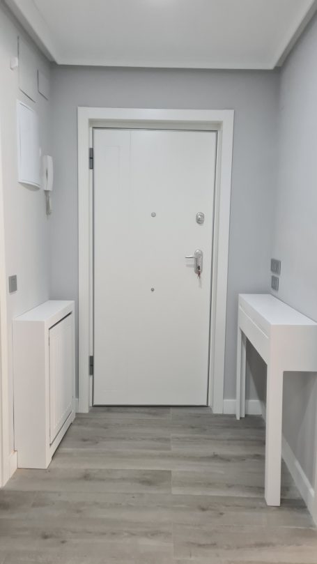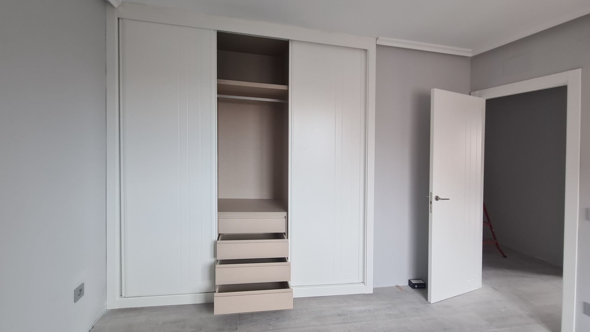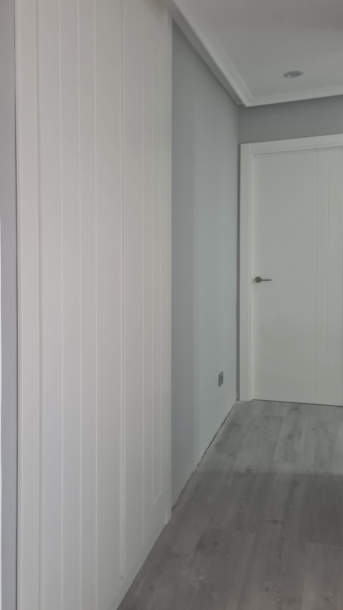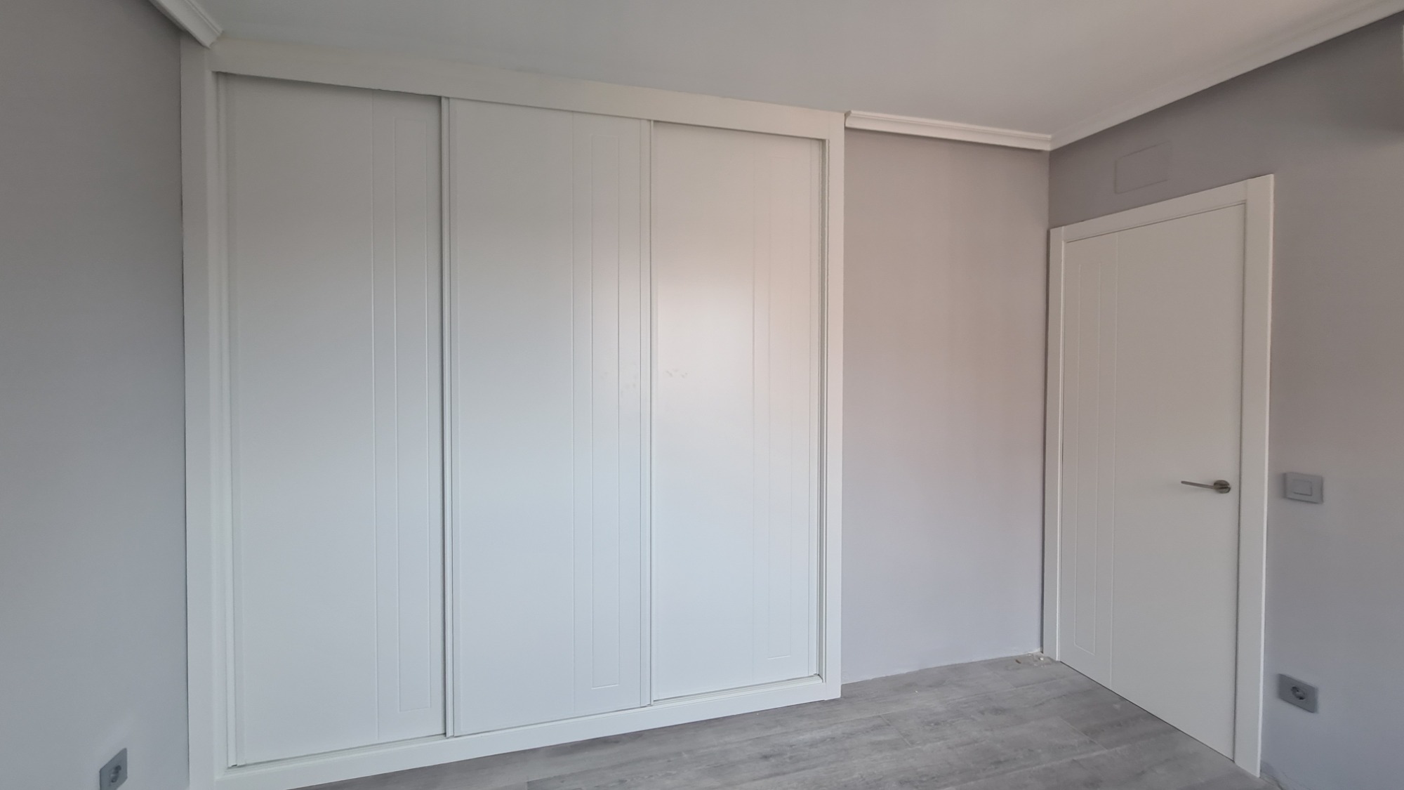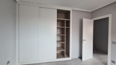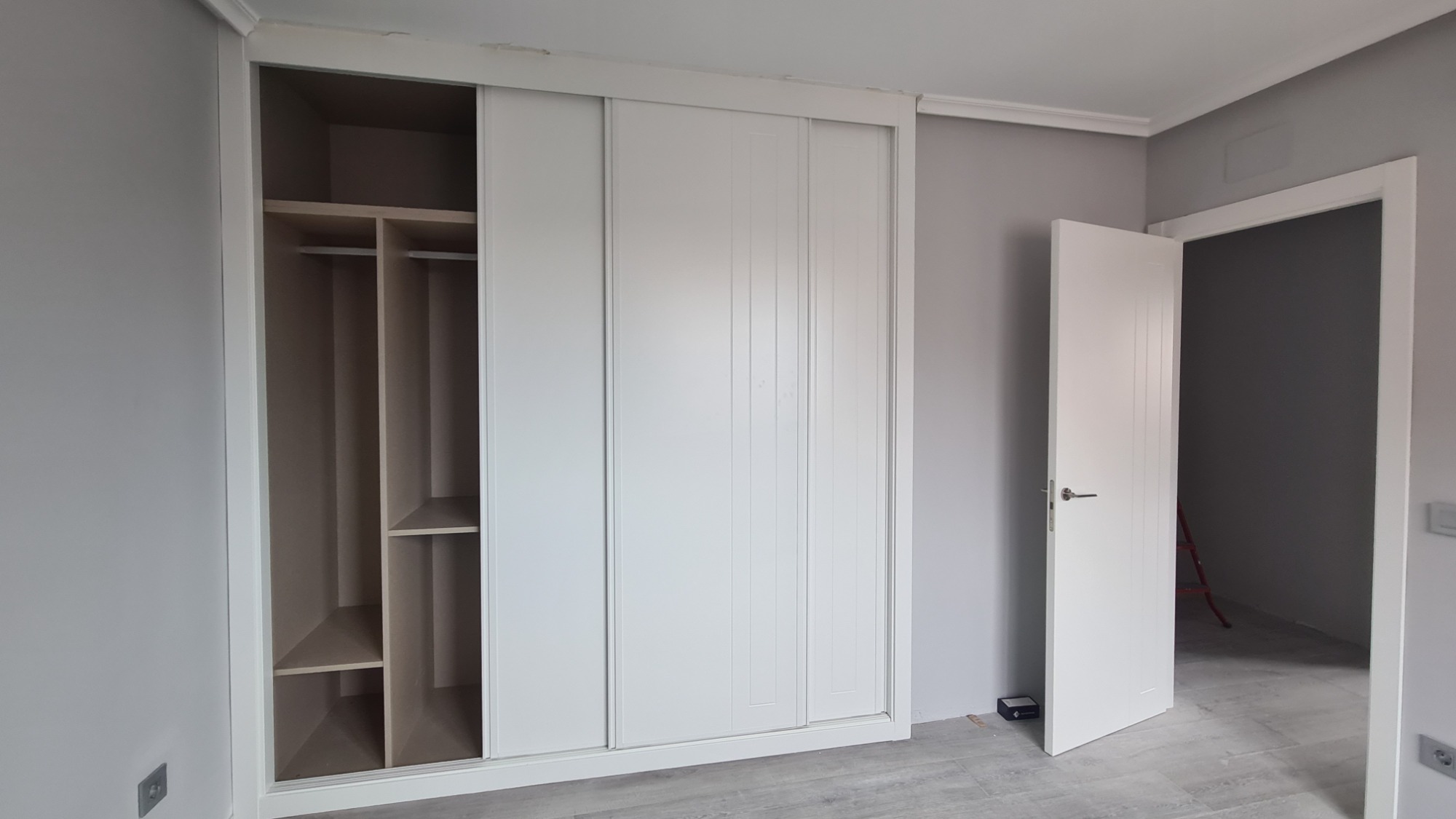 En esta obra se combinaron los fondos y las alturas de los armarios, para su máximo aprovechamiento. Los armarios del pasillo y las habitaciones, se hicieron coincidir a los dos lados, es decir sin tabique intermedio, con lo que conseguimos eliminar perdida de espacio.