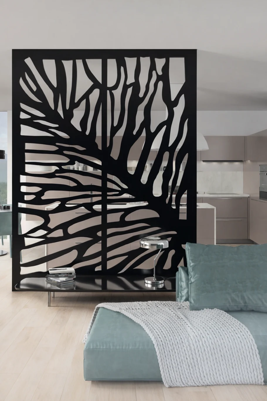 Integrar un separador de ambientes es una solución decorativa inteligente.