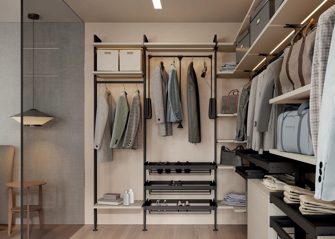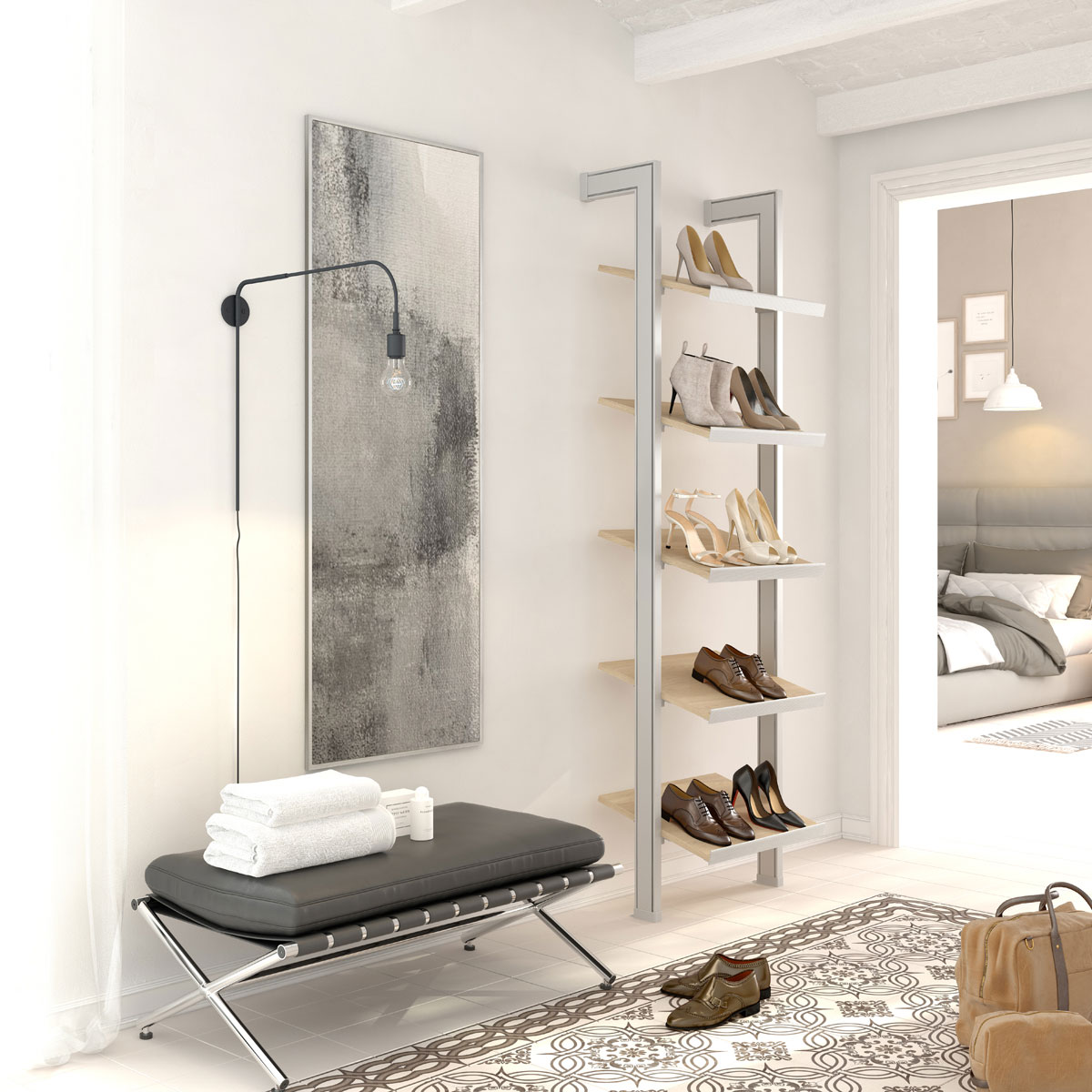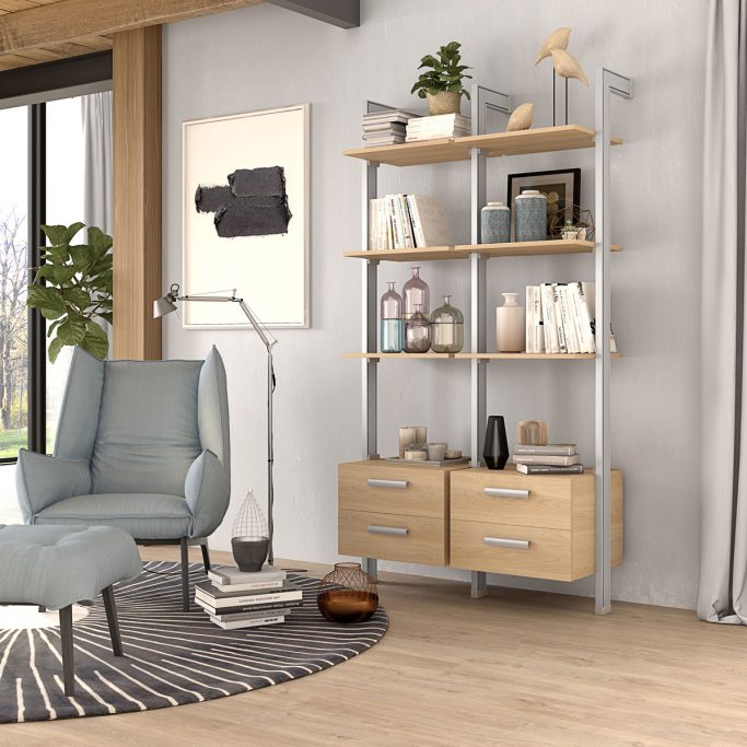 Creo soluciones según tu forma de vivir: barras, cajoneras, módulos abiertos, estanterías, zapateros y más.